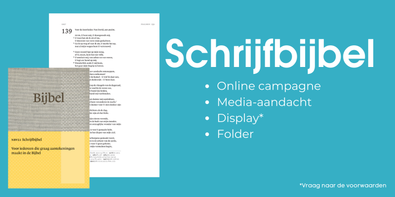 Goed nieuws: de Schrijfbijbel is binnen! De NBV21 Schrijfbijbel is speciaal voor wie aantekeningen wil maken bij de Bijbeltekst. Maar ook voor liefhebbers van Bible journaling is deze NBV21 Schrijfbijbel een uitkomst. Een tijdloze uitgave in zowel uitstraling als inhoud.