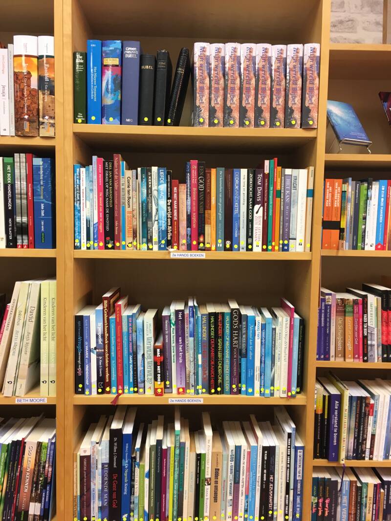Er staan weer mooie ‘nieuwe’ tweedehandsboeken en Bijbels in de kast. Boeken van onder andere: Tim Keller, Gary Chapman, Charles Spurgeon, Wilkin van der Kamp, Anne van der Bijl en Corrie ten Boom.